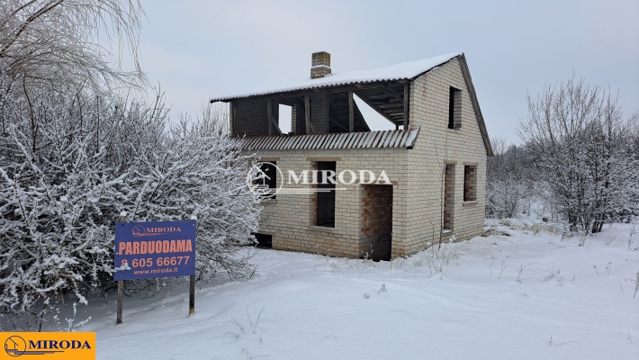 Tai - 28 arų ploto namų valdos sklypas Miško gatvėje (pakraštyje gyvenvietės), kuriame mūrinis, 64,99 kv.m. vieno aukšto su mansarda ir rūsiu nebaigtos statybos gyvenamasis namas.